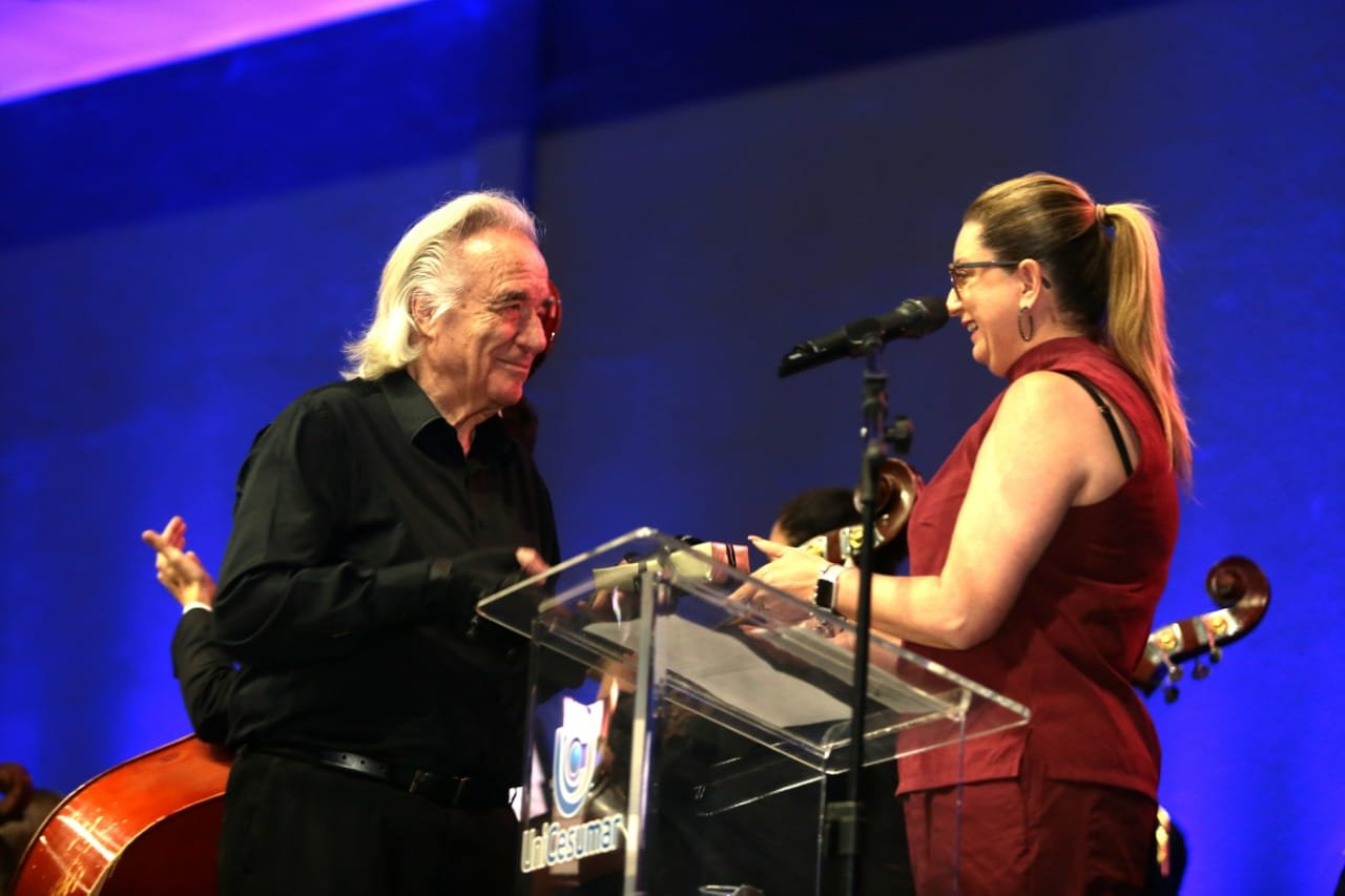 Alternando entre tocar piano e reger a orquestra, o maestro contou a história da própria vida, marcada pela superação de desafios e momentos que pareceram ser o fim de sua carreira, sempre retomada graças ao amor pelo som das notas transformadas em música. “No momento difícil do Brasil e do mundo, a música une gerações, povos e, antes de tudo, traz solidariedade, paz e amor para todo mundo. A música explica que Deus existe”, declarou.