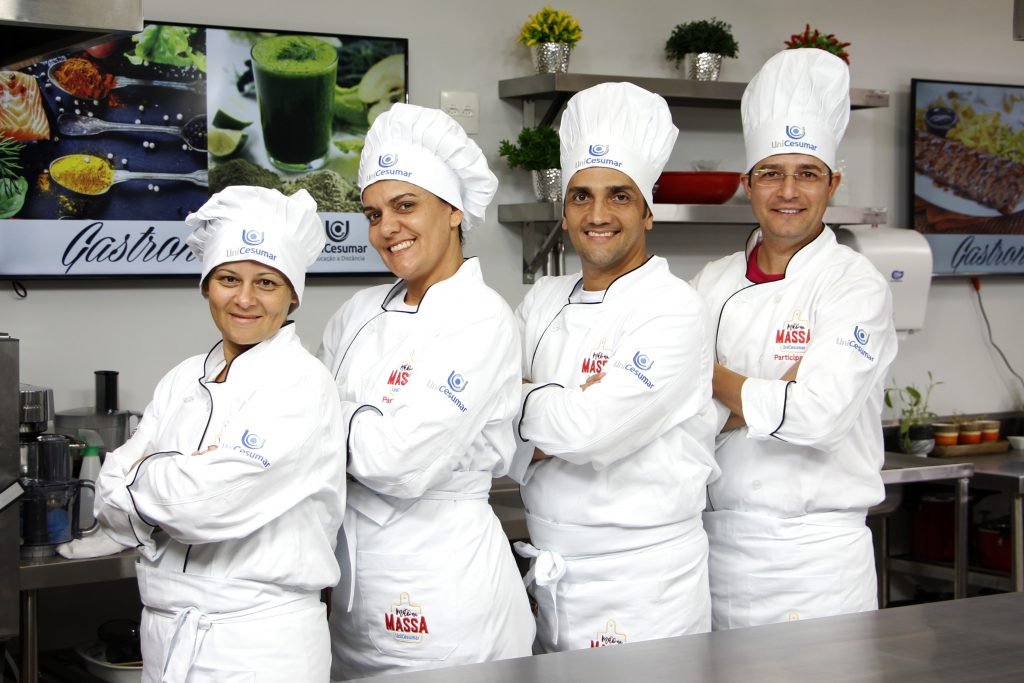 O chef Alexandre Gimenes marcou presença no evento, ministrando um curso sobre massas artesanais, onde o professor Hugo, da EAD Unicesumar, auxiliou na aula.