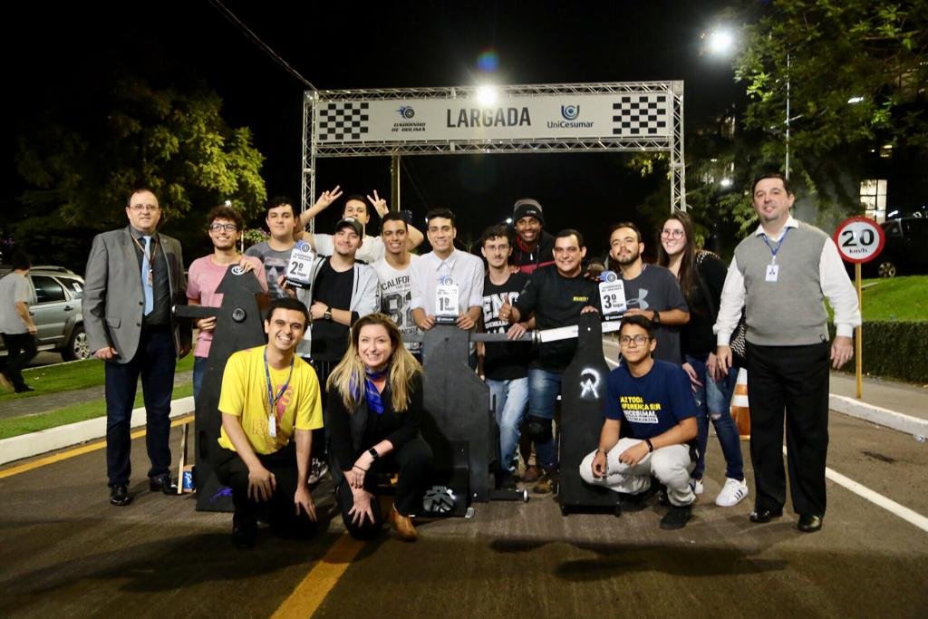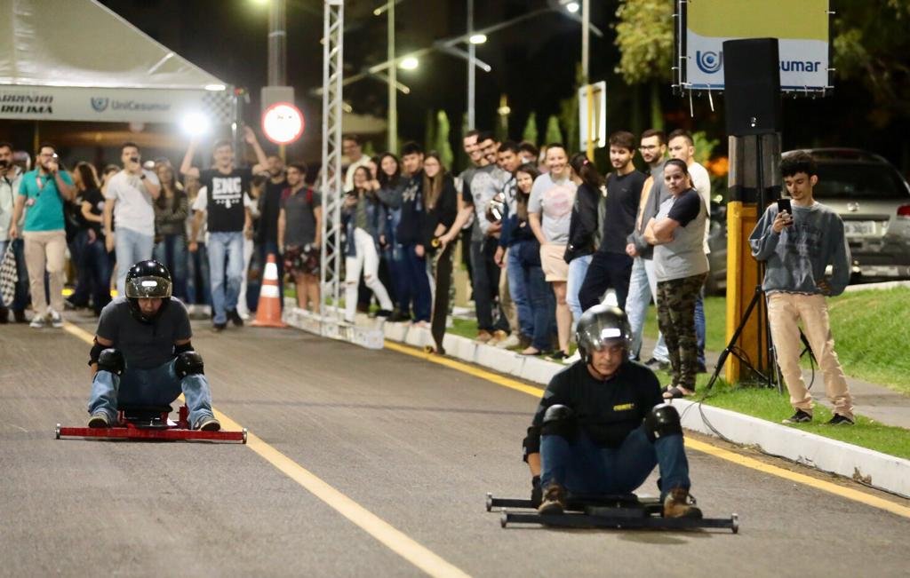 Avaliar o material que será construído o carrinho, o tipo de freio, o piloto da corrida, a melhor forma de ganhar impulso e o jeito correto para frear, que garanta a conclusão da prova no menor tempo. Essa foi a rotina de alunos das Engenharias da UniCesumar de Maringá nos últimos dois meses, que participaram do Campeonato de Carrinho de Rolimã, promovido em frente ao Bloco 11 na terça-feira (11).
