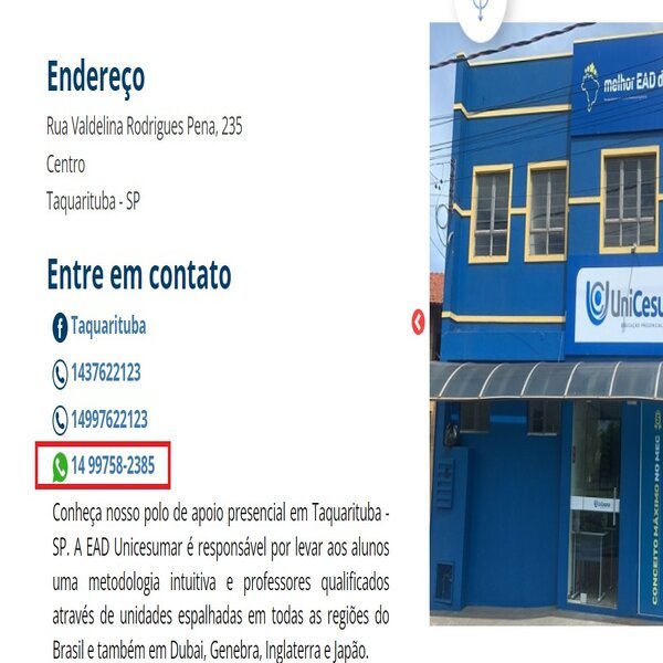 Conheça nosso polo de apoio presencial em Taquarituba - SP. A EAD Unicesumar é responsável por levar aos alunos uma metodologia intuitiva e professores qualificados através de unidades espalhadas em todas as regiões do Brasil e também em Dubai, Genebra, Inglaterra e Japão.