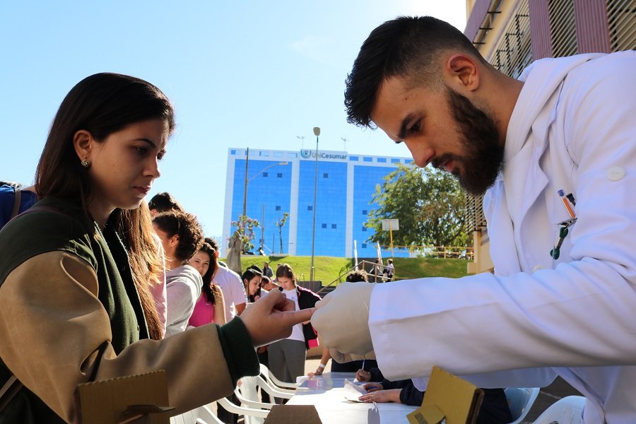 Os alunos do 3º ano do curso de Educação Física da Unicesumar realizaram nesta segunda-feira, 26, diversas atividades em celebração do Dia Nacional do Diabetes. O evento ocorreu na Praça do Conhecimento e ofereceu atendimentos para alunos e colaboradores da instituição.