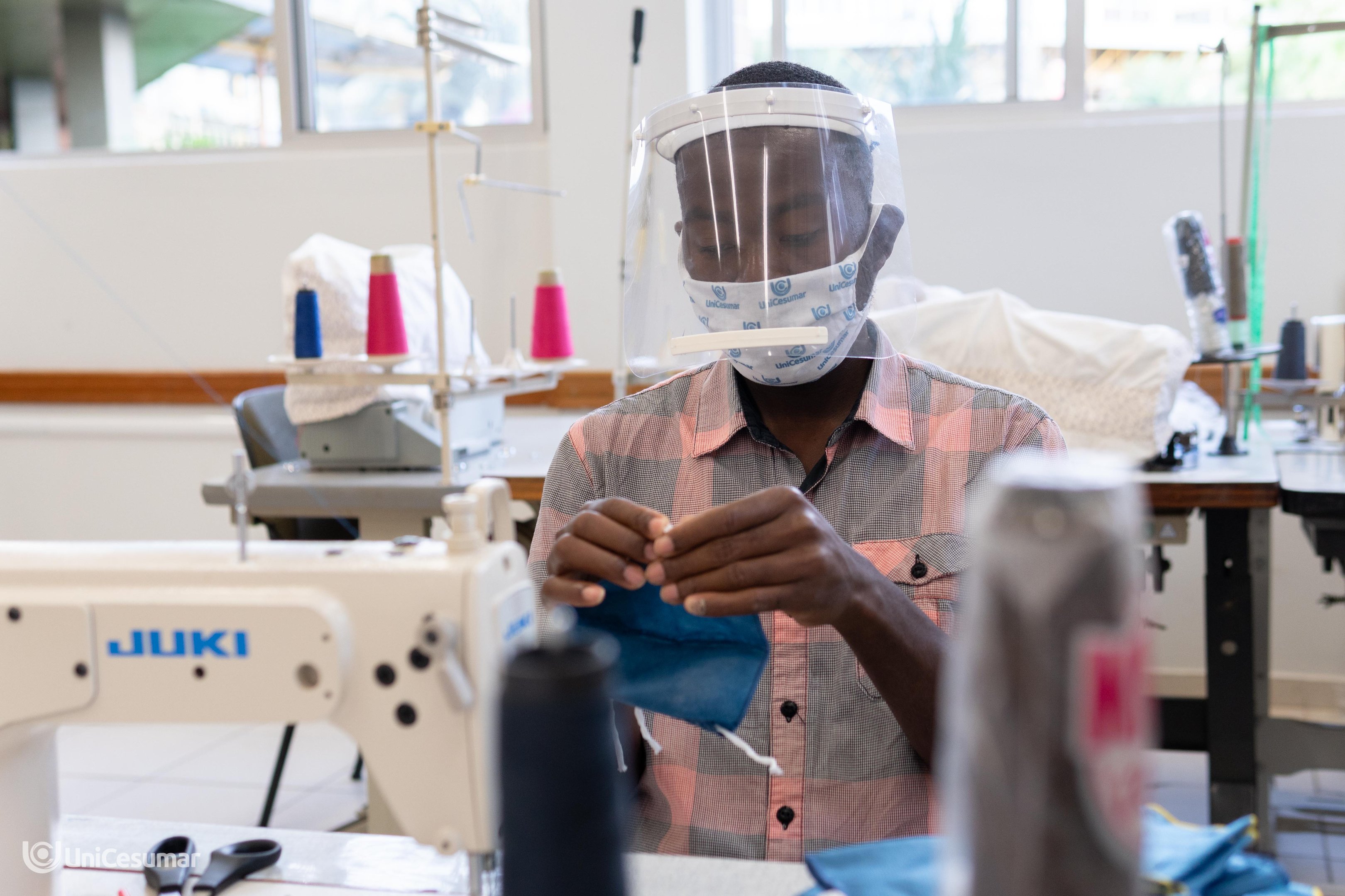 A UniCesumar, por meio do Departamento de Responsabilidade Social, começou um curso de produção de máscaras de tecido para imigrantes e refugiados. Oito alunos já iniciaram as aulas e, além de aprender a confeccionar o material, também poderão vendê-los. Em parceria com algumas cooperativas de Maringá, essa iniciativa visa trocar as máscaras por alimentos para pessoas em situação de vulnerabilidade social e ainda gerar renda para os imigrantes. As máscaras serão compradas pela Cocamar e toda renda será dividida entre os alunos do curso.