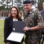 Representando a UniCesumar Curitiba, a diretora do campus, professora Cristiane Mello David, recebeu o diploma de Colaborador Emérito do Exército, reconhecimento aos relevantes serviços que a instituição presta ao Exército Brasileiro. O diploma foi entregue nesta semana no Forte do Pinheirinho de Curitiba, em comemoração ao Dia do Exército.